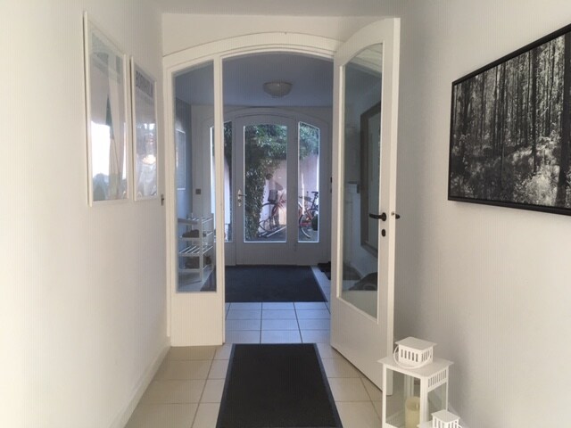 Charmantes und liebevoll eingerichtetes Appartement über 2 Etagen, 75 qm, in ehemalige Scheune eines historischen 4-Seiten-Hofes, hochwertige Küche mit großzügigem Wohnbereich, stilvolles Badezimmer mit Rainshower und Fußbodenheizung und separater Gästetoilette im Erdgeschoss. Zwei separate Schlafzimmer mit hochwertigen, bequemen Boxspringbetten à 180 cm im ersten Stockwerk, Sonnenterrasse mit wunderschönen Meerblick, inmitten einer Wildblumenwiese, 700 von Aarsdale entfernt.