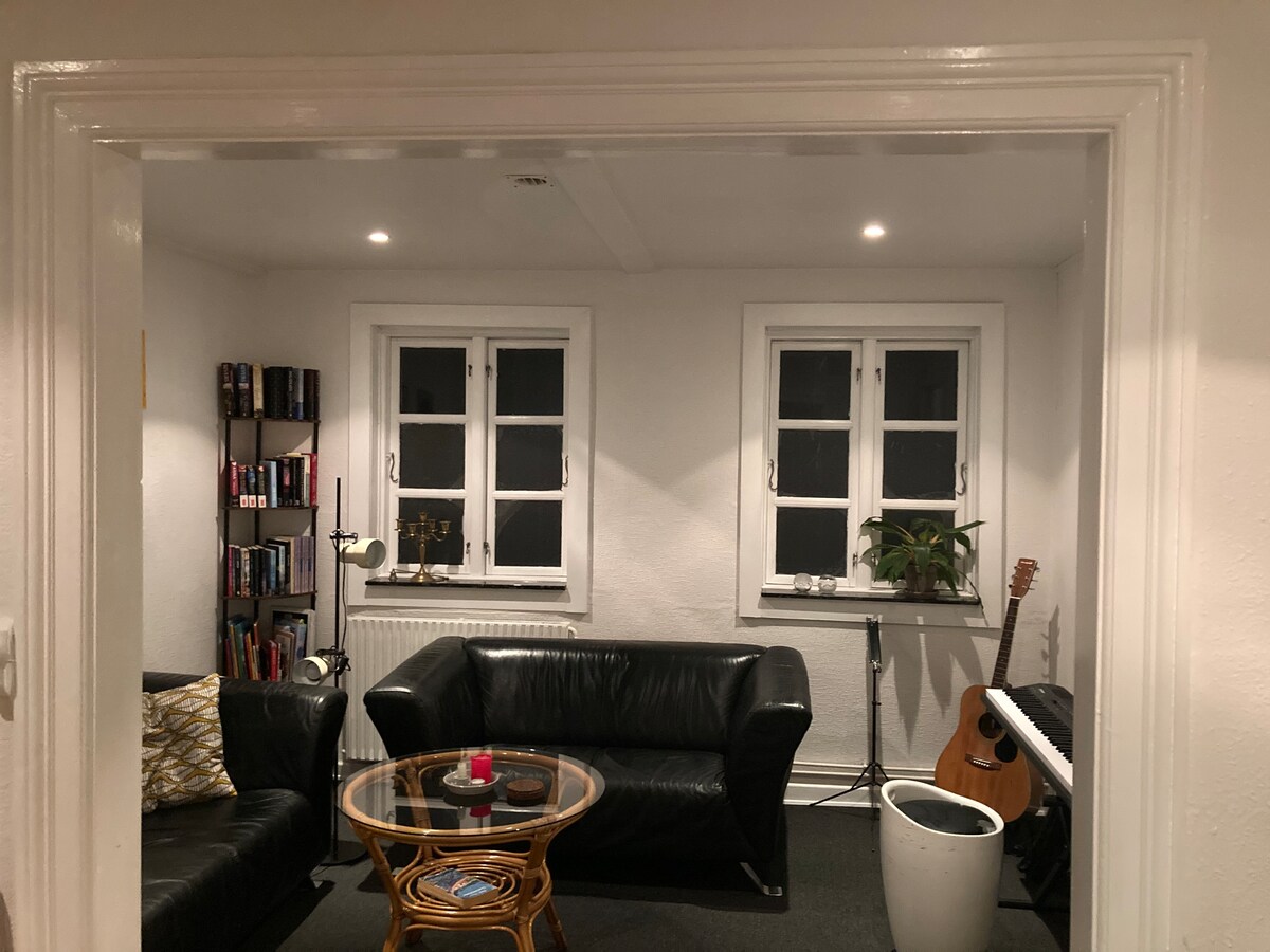 Чудовий будинок на Борнхольмі, за межами Ронне, недалеко від порома, літака, пляжного гольф-клубу тощо. Будинок знаходиться на двох поверхах. На верхньому поверсі є туалет, дві спальні, двоспальне ліжко, два загальні ліжка плюс дитяче ліжечко, одна кімната, через яку потрібно пройти, щоб дістатися до іншої. Перший поверх складається з вхідної ванної кімнати, вітальні та гарної кухні з виходом до невеликого патіо з мангалом для барбекю. У вітальні є диван-ліжко Гості відповідають за прибирання, якщо не узгоджено інше. Бажаємо вам насолоджуватися.