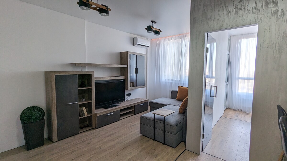 Сучасні апартаменти-студії з новим дизайнерським ремонтом у стильних сіро-жовтих тонах створюють атмосферу затишку та комфорту. У студії є велике ліжко з ортопедичним матрацом, кондиціонер, телевізор, швидкісний Wi-Fi, повністю укомплектована кухня та сучасна душова кімната. Ідеальний варіант для комфортного відпочинку після насиченого дня — як для подорожей, так і для тривалого проживання.