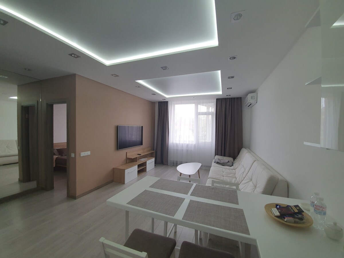 Орендуйте нову двокімнатну квартиру в Києві. Новий будинок на Білоруській вулиці. Наш будинок з цілодобовою охороною та відеоспостереженням. Квартира призначена для комфортного перебування трьох гостей. Ми не куримо! У номері є величезне двоспальне ліжко, кондиціонер, Інтернет, Wi-Fi, телевізор, кухня обладнана для приготування та прийому їжі. У ванній кімнаті є душ, чисті рушники, завжди чиста білизна та капці. Є консьєрж-сервіс.