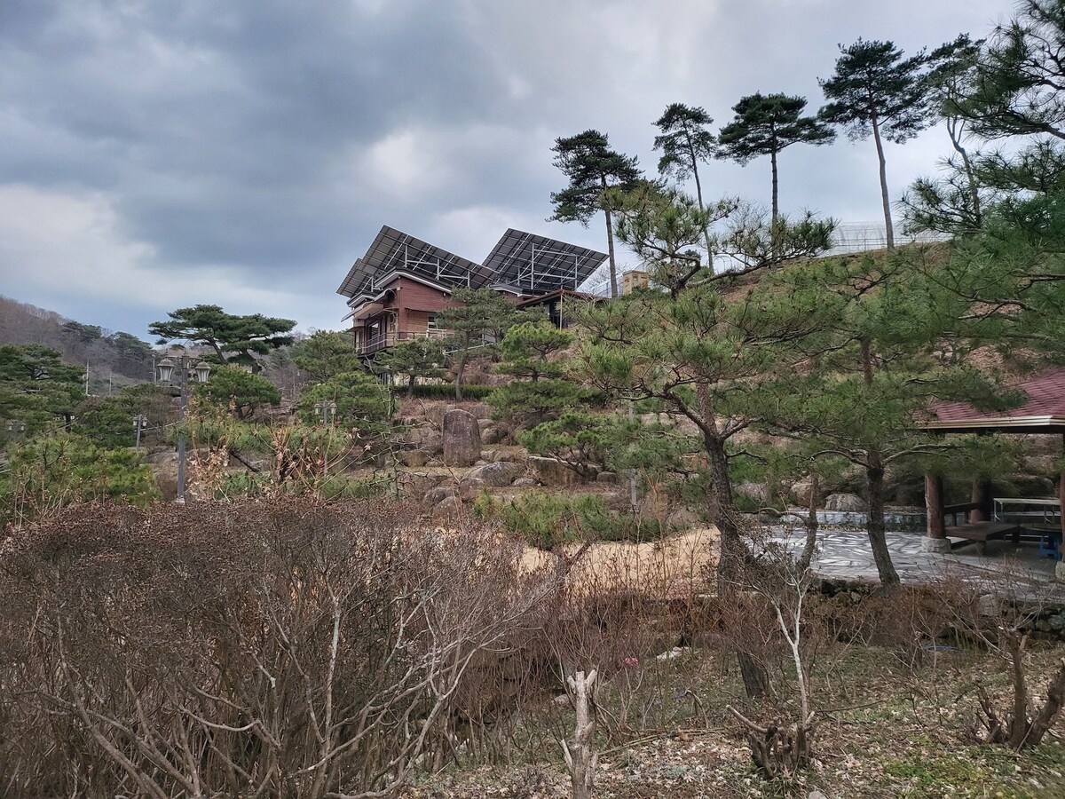 Це чудовий заміський будинок для всієї родини. – Усі кімнати – це кімнати з лесом, і коли ви прокидаєтеся, ви відчуваєте себе бадьорими. - У вітальні є дров’яна піч, Кімната 1 – це бойлер Кімната 2 – це плита з електричним полем (бойлер X) Кімната 3 — це справжній скарб.♨️ - За 5 хвилин їзди на автомобілі є променад у білоцвітному кедровому лісі, лісові зарості тощо🌳 - За 20 хвилин їзди на автомобілі розташована долина, а Наган-Юпсон, Сонгванса, Юмасаса, поле зеленого чаю Босон тощо – за 30–40 хвилин. – Навесні ви можете побачити дорогу сакури, а влітку – дорогу цинії💐🌸🌱 - У помешканні є караоке-система. У січні 2026 року з’явилася нова пісня. Насолоджуйтеся🎤 – Ми подаємо сніданки. Здебільшого це гарбузова каша або щось інше. – Барбекю – 20 000 вон, чаша для багаття – 10 000 вон. @@ Будь ласка, заздалегідь перерахуйте плату за барбекю на рахунок 60115656093627 Nonghyup (Go Hye-kyung) @@ – У нас є лагідне цуценя, яке любить людей. Якщо вам страшно, скажіть мені. Він знімний. – Можна взяти з собою цуценя, але більше одного заборонено. Просимо з розумінням поставитися до цього.