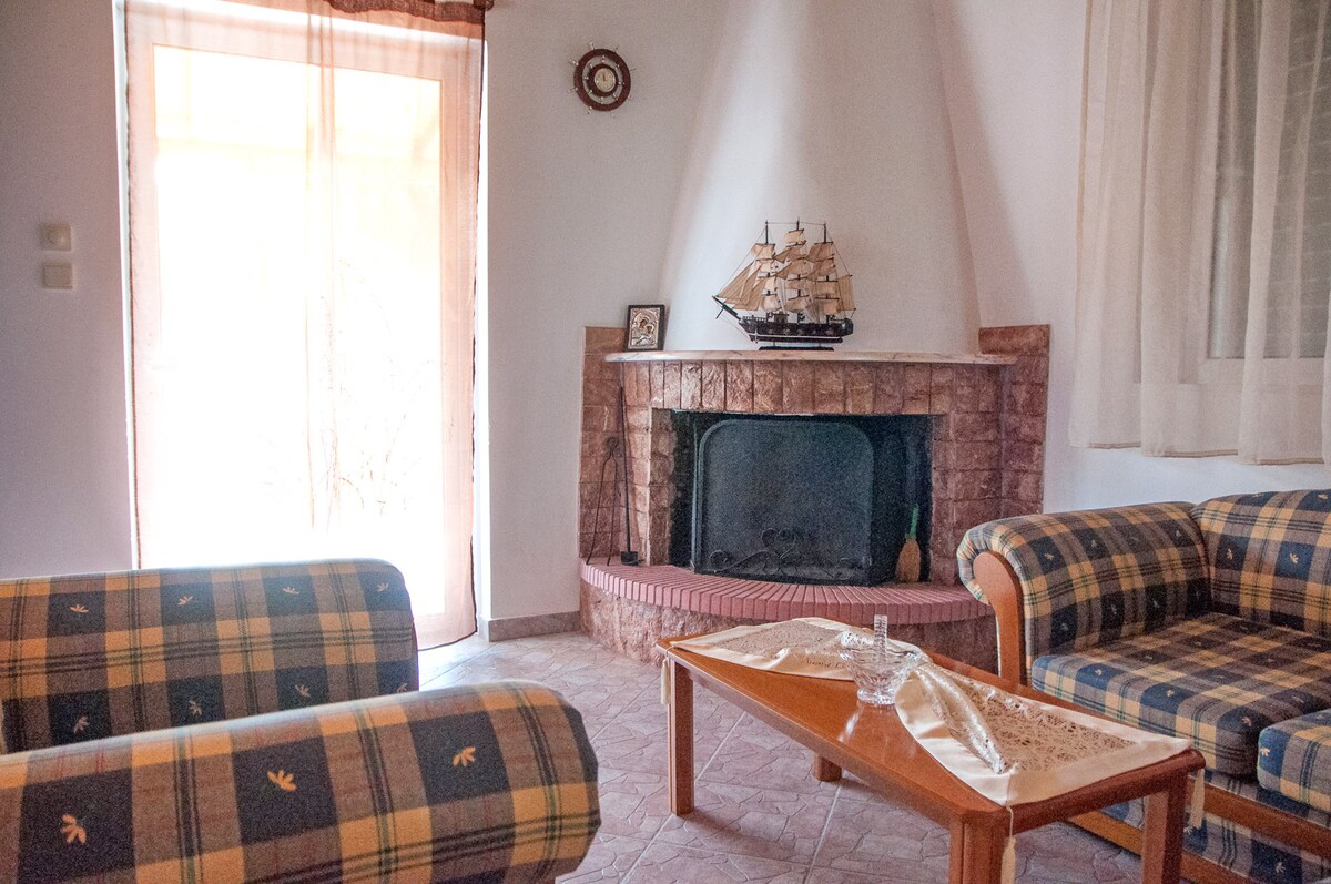 Цей привабливий і затишний будинок чекає на вас із вітальнею та зоною для приготування їжі на відкритому просторі. А також дві спальні кімнати. Будівля розташована таким чином, щоб відвідувачі могли насолоджуватися чудовим видом на долину річки Альфіос, а в деякі дні також є шанс подивитися на блискуче море за далекими пагорбами.