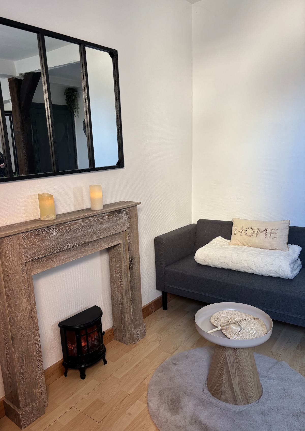 Квартира площею 41 кв. м у центрі Буржа. Розташована на 2-му поверсі Поруч із ресторанами та центром міста Складається з: - 1 вітальня з кондиціонером і диваном-ліжком 140X200 - 1 повністю обладнана кухня. - 1 кімната з кондиціонером і 1 ліжком 160X190 - 1 душова кімната з пральною та сушильною машиною. - 1 деталь, що містить диван BZ, щоб зробити ЛІЖКО 140X190 Крім того: Wi-Fi, Netflix, Amazon Prime, ліжко з парасолькою. Немає приватного місця, але є безкоштовна парковка, гнучкі години, коли це можливо