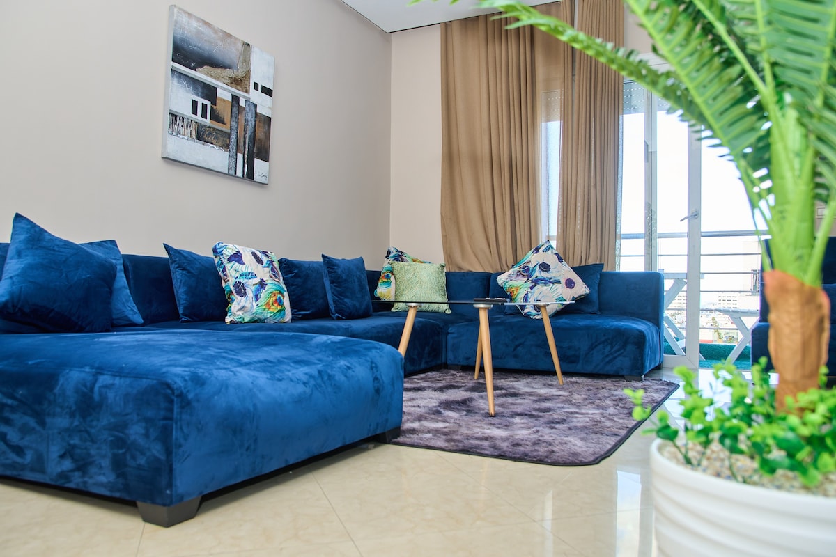 Butterfly 703🦋, гавань спокою, де елегантність сучасної резиденції поєднується з комфортом 5* готелів у центрі Касабланки! Відпочиньте в просторій вітальні з сучасним дизайном, обладнаній 55-дюймовим смарт-телевізором з Netflix та IPTV для абсолютного відпочинку ввечері. Кімната, справжнє затишне гніздо, обіцяє спокійні та відновлювальні ночі ☁️ З власного балкона спостерігайте за чудовими заходами міста, що робить кожну мить вашого перебування незабутнім! ✨