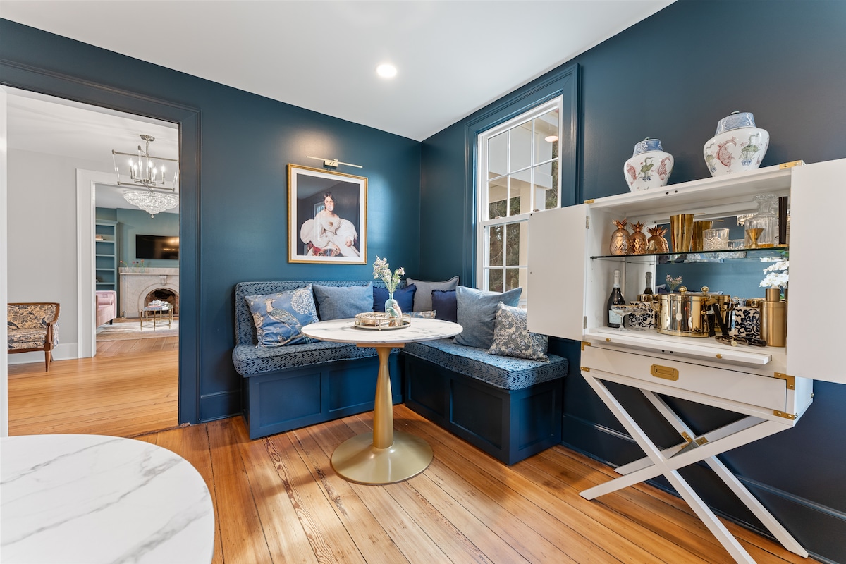 Step into history at our 1700s farmhouse in charming Bowling Green, VA. This historic gem combines old-world charm with modern amenities for an unforgettable stay. The House on Main Street features original hardwood floors, antique fireplaces, and preserved architectural details. Each room thoughtfully reflects the home's history while offering modern comforts. During Christmas, the farmhouse is adorned with twinkling lights and festive ornaments, adding a magical holiday touch to your stay.