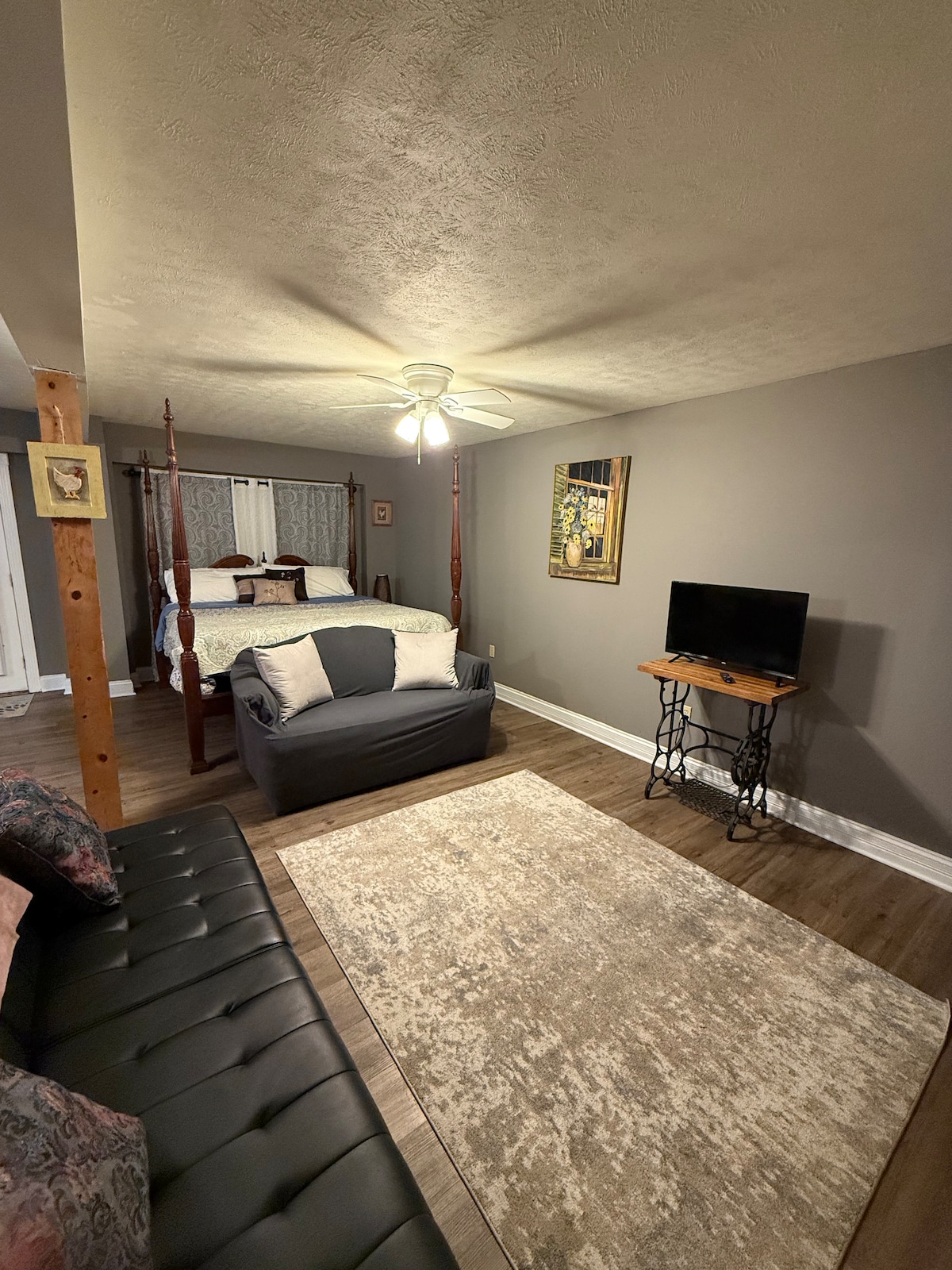 Це помешкання призначене для цілого підвального приміщення і включає в себе повну кухню, ванну кімнату, вітальню,їдальню та дві бонусні спальні з ліжками розміру Queen size. У номері є пральна та сушильна машини. Це помешкання знаходиться в 10 хвилинах ходьби від більшості історичних інтересів центру Данвілла, а також місцевого нічного життя та барів. Ми з нетерпінням чекаємо, коли ви зможете відчути чарівність маленького містечка та південну гостинність. До зустрічі!