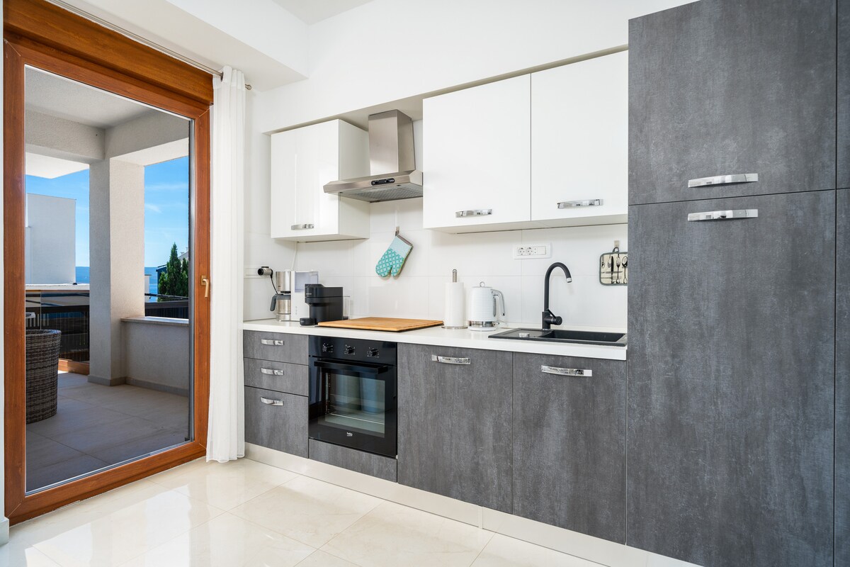 Нова квартира на 5 місць для двох, повністю відрізняється від інших. Чудове розташування з приватним гаражем, прекрасним видом на море. Ванна розташована на точці огляду на щурів Златні та Видову гору. Ліжко King size, інфрачервона сауна, підлогове опалення зроблять ваше перебування дуже комфортним протягом усього року. Ми надаємо халат, тапочки та пляжні рушники, кавоварку Dolce gusto. Розумний телевізор у вітальні та спальні, включно з Netflix. Можливий аранжевий сніданок "шведський стіл" у сусідньому готелі 4* Тільки для дорослих.