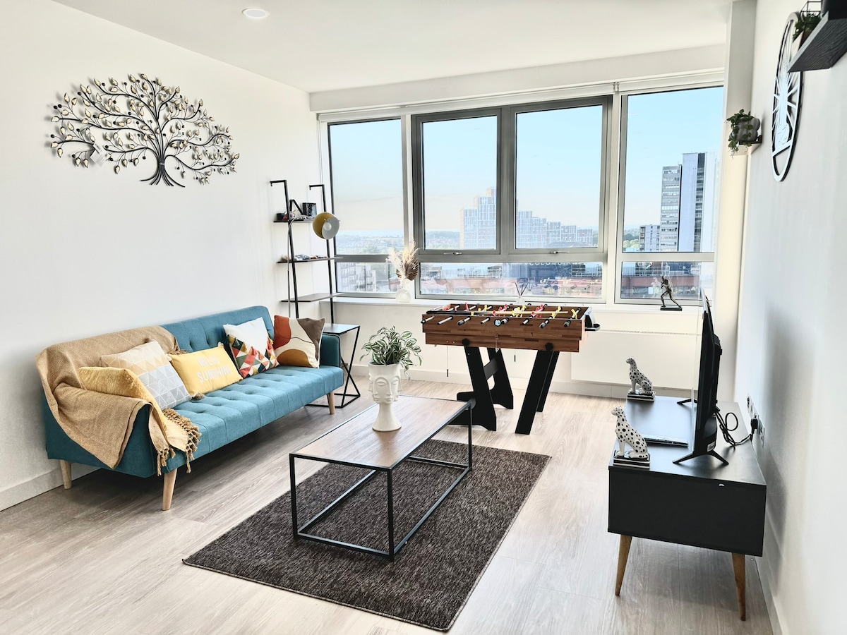 Зробіть перерву в нашому розкішному пентхаусі. З величезного балкону, що виходить на південний захід, відкривається панорамний вид на захід сонця щовечора, що робить його ідеальним місцем для відпочинку після дня. Інтер 'єр яскравий і сучасний, з вікнами від підлоги до стелі та розсувними дверима, які наповнюють простір природним освітленням. На повністю обладнаній кухні є все необхідне для приготування їжі, а вітальня обладнана преміальним аудіо (Sonos) та телевізором для ваших розваг.