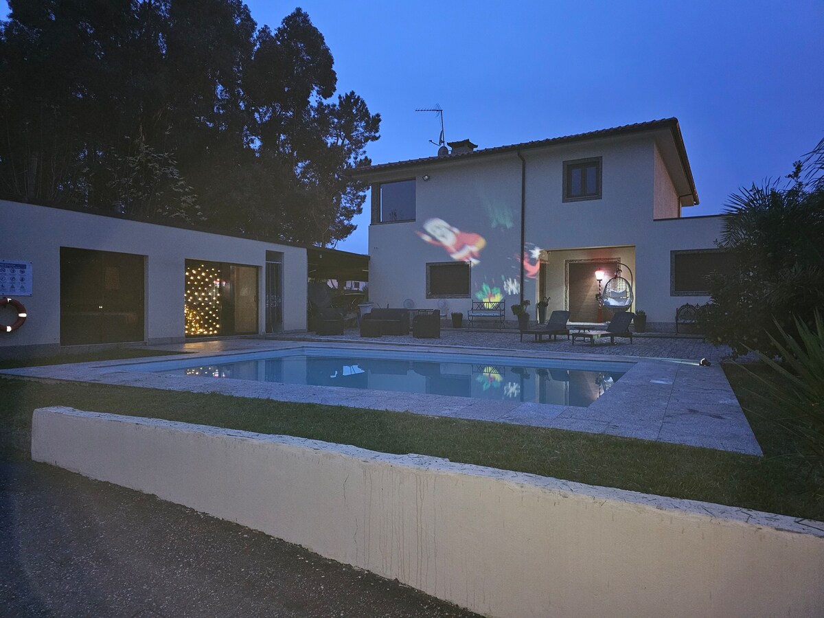 Moradia inteira Situa-se na cidade de Braga. É constituída : 1 suite mais 3 quartos de casal, 3 casas de banho, grande sala de jantar e estar com lareira e ar condicionado, grande cozinha equipada, lavandaria, garagem e excelente relvado com chuveiro Possui vistas sobre o parque de jogos de Braga, Bom Jesus, cidade e montanha do Sameiro. A casa localiza-se num raio de 30km da praia e das montanhas da Cabreira e do parque Natural da Peneda Gerês.