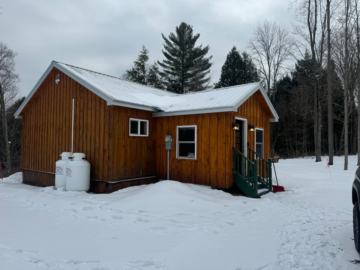 Затишна хатина у чудовому центральному районі Таг-Гілл. Якщо ви катання на санках або лижник взимку або катання на квадроциклах/катання на квадроциклах навесні/восени, ці зруби - це те, що ви шукаєте. Поруч із багатьма ресторанами/барами в цьому районі, безпосередньо на стежках для снігоходів і через дорогу від початку трас для квадроциклів на пагорбі Таг. Поруч із містами Ліонс-Фолс, Брантінгем, Мартінсбург. Нещодавно розширена парковка, вугільний гриль, камін і дошки для корнхолів. Нова мікрохвильова піч на кухні.