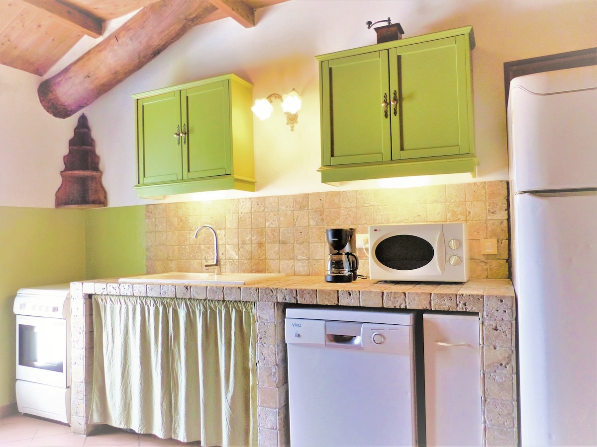 Романтичний будиночок у центрі провансальського селища площею 47 м² поєднує в собі автентичний шарм і сучасний комфорт. Насолоджуйтеся тіньовою терасою, затишною вітальнею з каміном, спальнею з видом на виноградники та атмосферою, пронизаною історією. Ідеально підходить для відпочинку на двох, між природою, тихими та стародавніми каменями. Унікальне місце, де можна зустрітися та зарядитися енергією в Провансі. Басейн, барбекю та сонячні ванни є СПІЛЬНИМИ з іншими будиночками.