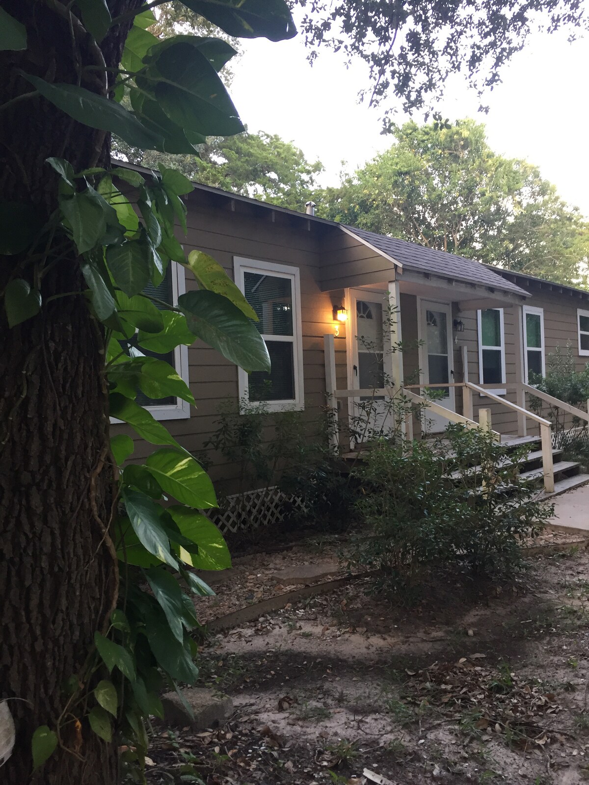 Приватний, спокійний і чистий гостьовий будинок з усім необхідним на просторій площі 700 кв. футів. • Ретельно прибрано вашим супергосподарем • Швидкий Wi‑Fi (532 Мбіт/с) • Пральна машина/сушильна машина в помешканні • Робоче місце • Повноцінна кухня з усім необхідним • Відмінний кондиціонер/обігрів • Затишний диван і крісло • 55-дюймовий смарт-телевізор із Hulu та Disney+ • Приватна ванна кімната та душ, укомплектовані предметами першої необхідності • Відкриті освітлені сади з заспокійливими водними елементами Повністю відокремлений від головного будинку Сучасне вбудоване світлодіодне освітлення Мідвей Х'юстон/Галвестон