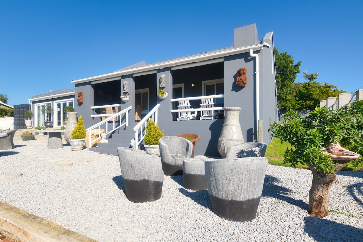 Відпочиньте й розслабтеся в цьому спокійному, стильному помешканні з 180-градусним панорамним видом на Струїсбааї. Цей екологічно свідомий простір працює на сонячній енергії та газу і має резервуари для зберігання дощової води...таким чином, немає проблем зі скиданням навантаження або водопостачання. Вона має власне затінене патіо, зовнішню обідню зону та гідромасажну ванну на дровах. Він знаходиться в декількох хвилинах ходьби від пляжу, гавані, магазинів і ресторанів. Помешкання складається з зони студії, міні-кухні, ліжка «queen-size» та великої душової кабіни.