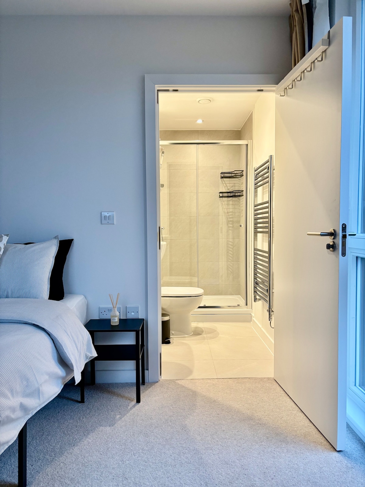 A high-spec 2-bedroom, 2-bathroom apartment with private balcony and stadium views. Ideal for events, business trips, or a calm London base. Just a 5 min walk to Wembley Park Station, with Baker Street 15 minutes away and Central London in under 20. Wembley Stadium only a 10-minute walk away. Features 2 stylish bathrooms, and private balcony. Located in a vibrant hub with the London Designer Outlet, supermarkets, and 50+ restaurants at your doorstep. Fast Wi-Fi and premium finishes.