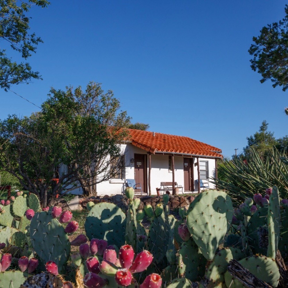 Вінтажний мотель на заході пустелі Техас з чарівними номерами та затіненими зонами на відкритому повітрі. Всі наші кімнати нещодавно відремонтовані. У наших винятково чистих номерах є мікрохвильова печь, холодильник, антикварна комода, рушники та повна ванна кімната. У нас є номери з 1 двуспальним ліжком (Односпальний) або 2 двуспальними ліжками (Двуспальний). Якщо ви бажаєте отримати подвійне бронювання, виберіть 3 або більше гостей. Це дозволить стягнути додаткові 10 доларів США, що є додатковим збором за двомісний номер.