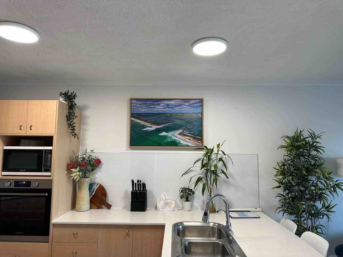 Найбільший басейн-лагуна, гарячі басейни, спа-центри на узбережжі! Затишна квартира з однією спальнею. Підходить для пар, 2 дорослих і до 2 дітей. Ванна для двох і душ! Диван-ліжко підходить лише для дітей. Повна кухня, ВИД НА ОКЕАН! Розташована за 100 метрів від пляжу та в пішій доступності до Молулаби. Ресторани прямо біля ваших дверей, піца, суші та клуб серфінгу Алекс за 1 хвилину ходьби. Берегова лінія, ігрова зона для дітей, тренажерний зал, безкоштовне використання барбекю, скейт-парк через дорогу, це прекрасний оазис для відпочинку.