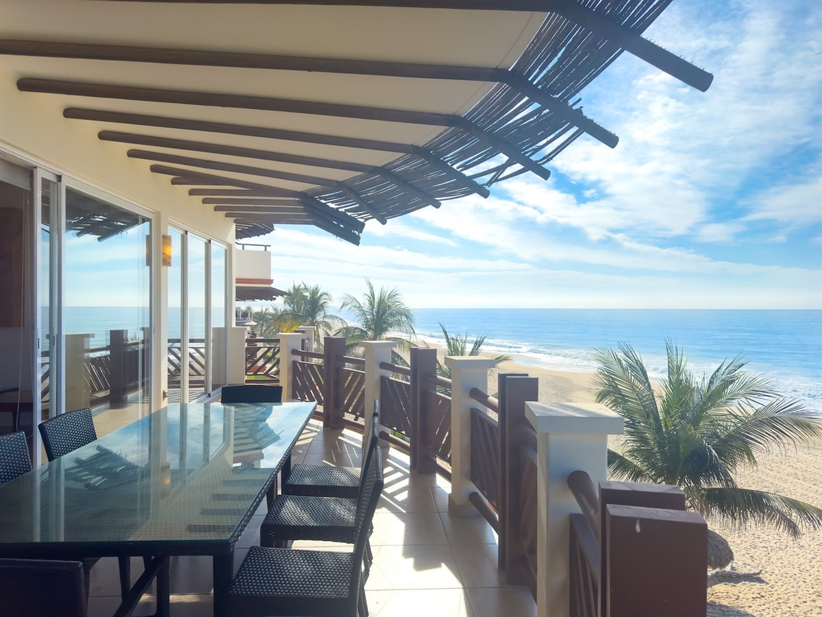Ваш пентхаус на березі океану на п 'ятому поверсі чекає всього в 25 хвилинах їзди від Пуерто-Ескондідо! Розташована в резиденціях Vivo Resort. Насолоджуйтеся захоплюючим видом на море з нашого кондомініуму з красивим балконом, який ідеально підходить для сніданку або заходу сонця. Наша ексклюзивна приморська гавань у затишному Плайя-Пальмаріто гарантує, що кожна деталь ретельно виготовлена для вашого комфорту та задоволення. Віддайтеся привабливості блакитної краси Тихого океану, занурившись у обійми природи