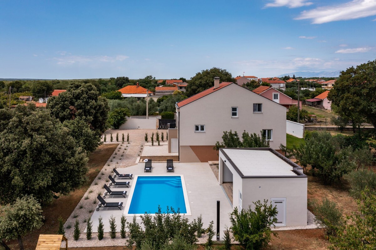 Ця красива вілла розташована в затишному районі і оточена прекрасною природою. Ми знаходимося недалеко від міста Нін і найпопулярнішого пляжу в цьому районі . Міська адміністрація Задара знаходиться в 15 хвилинах їзди на автомобілі. Будинок - ідеальне місце для великих сімей і груп. Він дуже просторий і сучасний обладнаний. Вілла складається з п 'яти спалень, трьох ванних кімнат, вітальні з їдальнею, басейну з підігрівом та кухні на відкритому повітрі. Наші гості мають безкоштовне паркувальне місце, WI-FI та гриль.