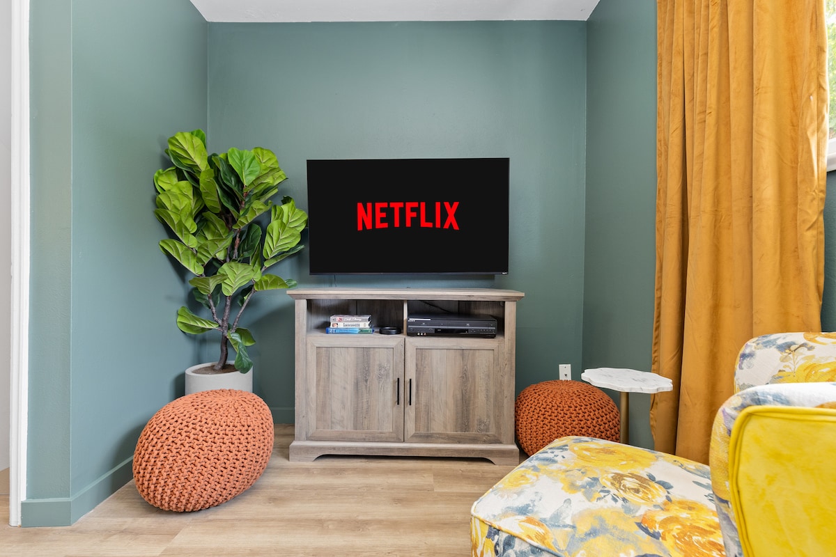 Самостійна квартира в сімейному будинку. Повні зручності. Перегляньте постіль під іншими подробицями. Ідеально підходить для вихідних, розширеної робочої поїздки, сімейної бази для відпочинку та будь-якої іншої події. Жодних домашніх тварин, крім службових тварин. Виділений вхід у портик, багато світла, опалення та кондиціонер, повна ванна кімната, повна міні-кухня, холодильник, спеціальна пральна машина/сушарка, велика шафа для ходьби, швидкий Wi-Fi та дротова локальна мережа, 4K телевізор Roku, робочий стіл. Європейські господарі здійснили поїздки до 50 країн. Запрошуємо гостей будь-якого походження!