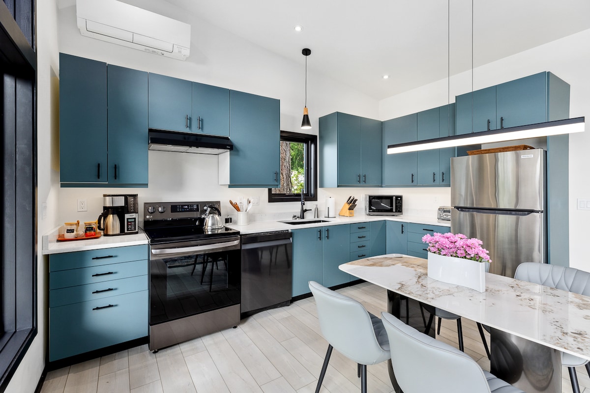 Відпочиньте біля зірок і прокиньтеся з птахами в цьому приватному гостьовому будинку-студії. Згори донизу це особливе місце. Склепінчасті стелі та освітлення неба дозволяють природному сонячному світлу фільтрувати вище. Дерев 'яна підлога в сільській місцевості, обрізана кленовими деревами, блискуть під ногами внизу. Відкрита, сучасна кухня з гранітними стільницями, плитою, плитою, холодильником, мікрохвильовою піччю, кавоваркою, тостером та усім необхідним для приготування та споживання їжі вдома. Окремий вхід і тераса з зовнішніми сидіннями дозволяють насолоджуватися природою, коли олені бродять по саду, а птахи дартс навколо дерев.