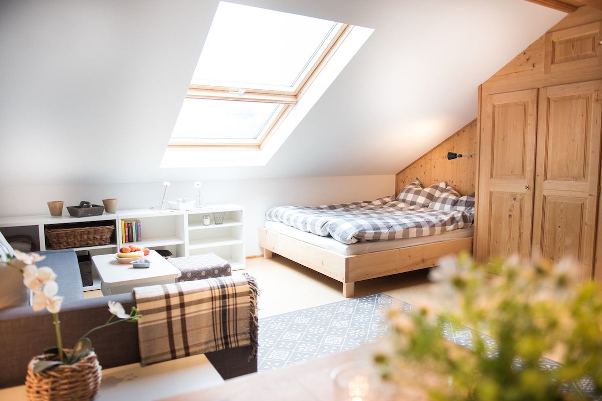 ✨ Auszeit im Grünen Stilvolle, helle Dachwohnung mit eigener kleiner Loggia – ideal für Paare (und kleine Familien) , die Ruhe und Komfort lieben. 🌿 Wohnen & Wohlfühlen ✮ Kleine Loggia mit Wiesenblick für Frühstück + Sundowner. ✮ Wohnraum mit Sofa, Esstisch, Klimagerät, Küchenzeile (Ceran, Mikrowelle mit Grill/Heißluft, Kühlschrank mit Gefrierfach, Carbonator, Nespresso etc.). ✮ Schlafzimmer mit Doppelbett, Einbauschrank und Sekretär. ✮ Bad mit Wanne, Duschwand, WC und großem Spiegel.