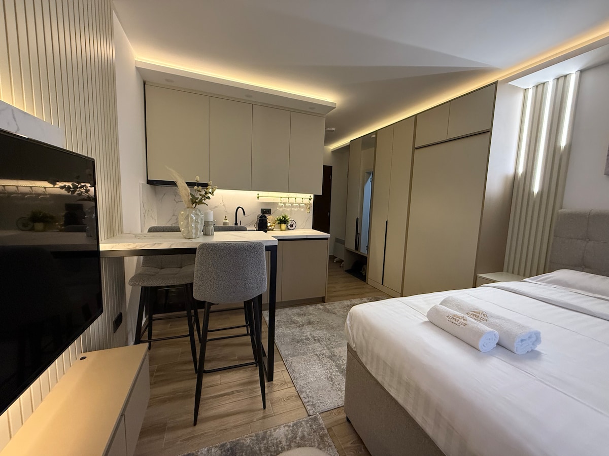 Квартира-студія площею 28 кв. м Оздоровчий та спа-центр (додаткова плата) Безкоштовна парковка та гараж (за додаткову плату) 50-дюймовий телевізор, кабельне телебачення, інтернет 100 Мбіт/с Повністю обладнана кухня з такими приладами: гарячі тарілки, духовка, духовка, холодильник, чайник, тостер тощо. Депозитна скринька Приймальня (7:00 - 22:00) Відстань 6 км від гірськолижного центру Копаонік Відстань 4 км від найближчого гірськолижного схилу Sunčana dolina Організований транспорт до лижного центру на маршрутному автобусі перед будівлею (за додаткову плату)