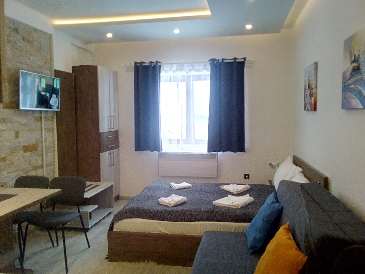 Квартира Влад має площу 80 м2, складається з 2 спалень, вітальні з кухнею, ванної кімнати та великої тераси. Прямо з номера можна вийти в спа-центрі готелю, ресторан, ігрову кімнату готелю. До центру трохи більше 4 км. Перед готелем є парковка та автобусний транспорт до центру. Можливий сніданок (шведський стіл), а ресторан - a la kart. У спа-салоні є відкриті та закриті басейни, соляна кімната, великий сонячний майданчик...
