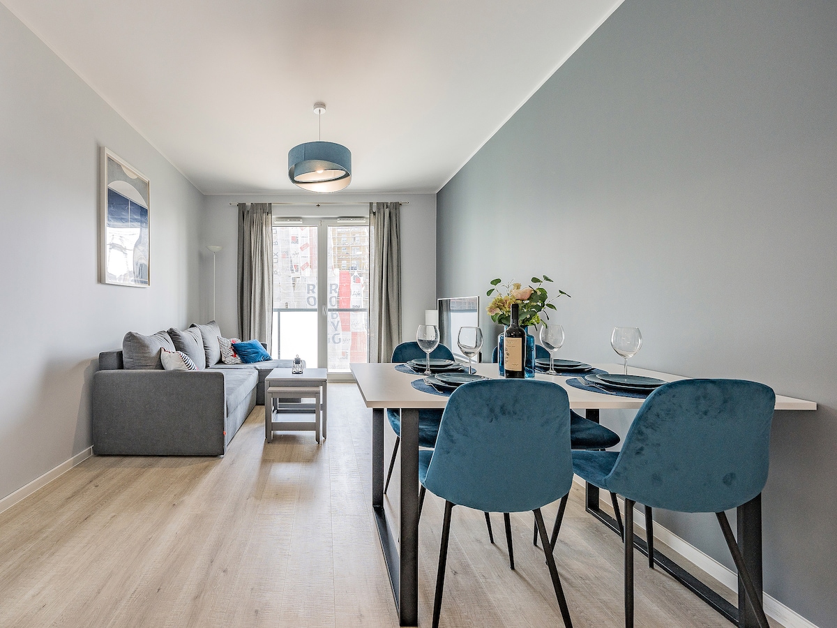 50 м2 в Zajezdnia Wrzeszcz, ul. Hallera 134, from ul. Grudziądzka. 1,7 км до пляжу в Бжезно – вхід № 50. Вітальня з міні-кухнею, спальня та ванна кімната, а також балкон площею 8 м2 та паркувальне місце в гаражі, вихід до тренажерного залу в будівлі. Високий рівень обробки. Оснащена індукційною варильною поверхнею, холодильником, посудомийною машиною, автоматичною кавоваркою Krups, пральною машиною, двоспальним диваном-ліжком. У помешканні: піцерія, Żabka, Biedronka, ресторани: Mimosa, Al Bacio, Con Dao Asian. 800 м до Lidl.