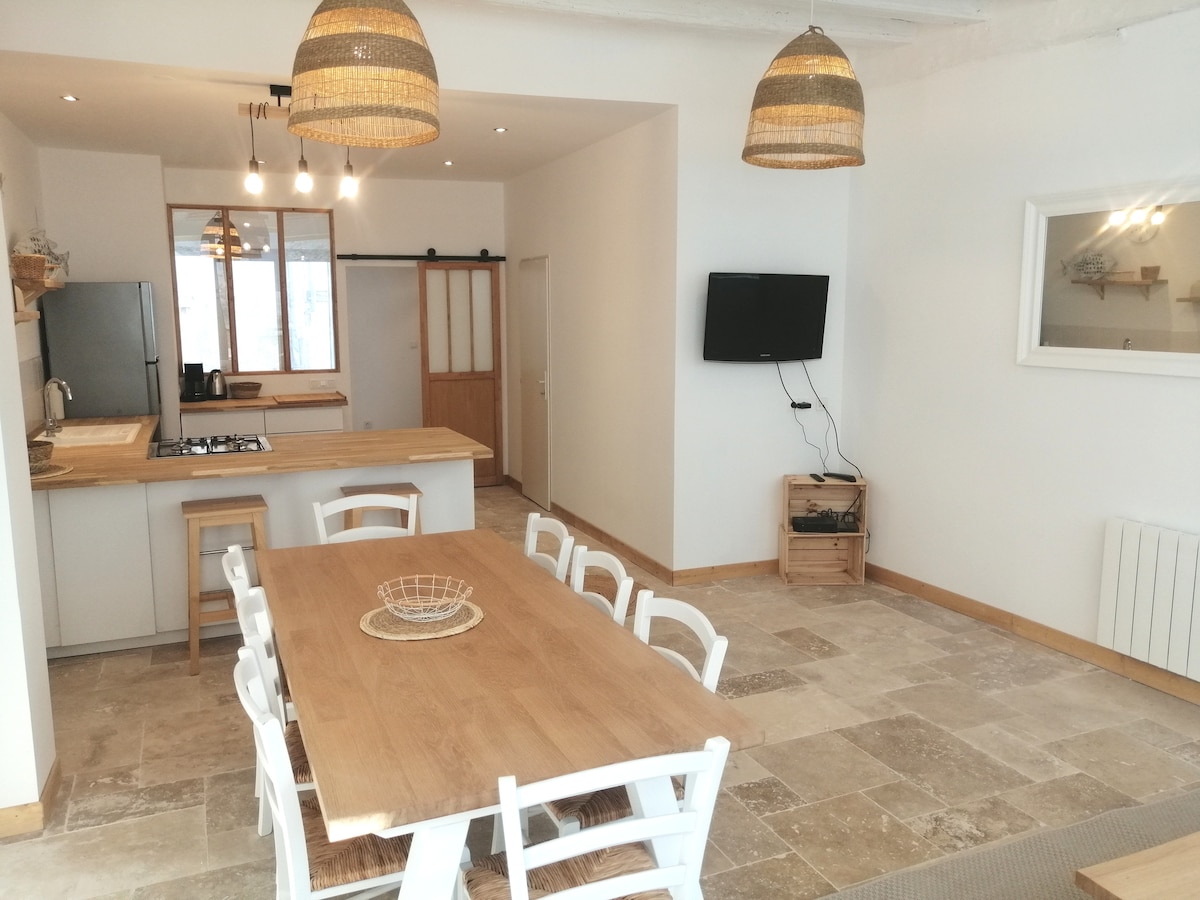 STUDIO de 30m2 dans une ancienne longère située en haut d'une colline vigneronne, au milieu d'un cadre arboré, mêlant charme de l'ancien, confort et design. Une grande pièce à vivre lumineuse, avec murs de terre et chaux, poutres apparentes, cheminée (non fonctionnelle), équipée d'une cuisine très bien équipée, d'un lit deux places 140x200 dont le matelas est tout neuf et d'un coin salon, ainsi que d'une salle de bain et WC privés entièrement créés pour le studio.