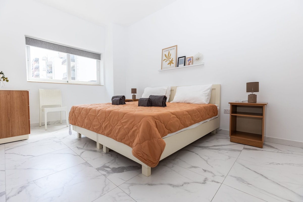 Насолоджуйтесь легким доступом до пляжу Буджибба, що знаходиться в 1 хвилині їзди по дорозі, розташованій на площі Буджибба. Сучасні та стильні апартаменти є ідеальним місцем для відпочинку з друзями або особливою людиною, центральним розташуванням та сучасним інтер’єром. 3 спальні, 2 ванні кімнати та повністю обладнана кухня. Кондиціонери, швидкий Інтернет у всіх кімнатах, Smart-TV. Рушники та постільна білизна включені, тостер, фен, пральна машина, сушильна машина, кавоварка.