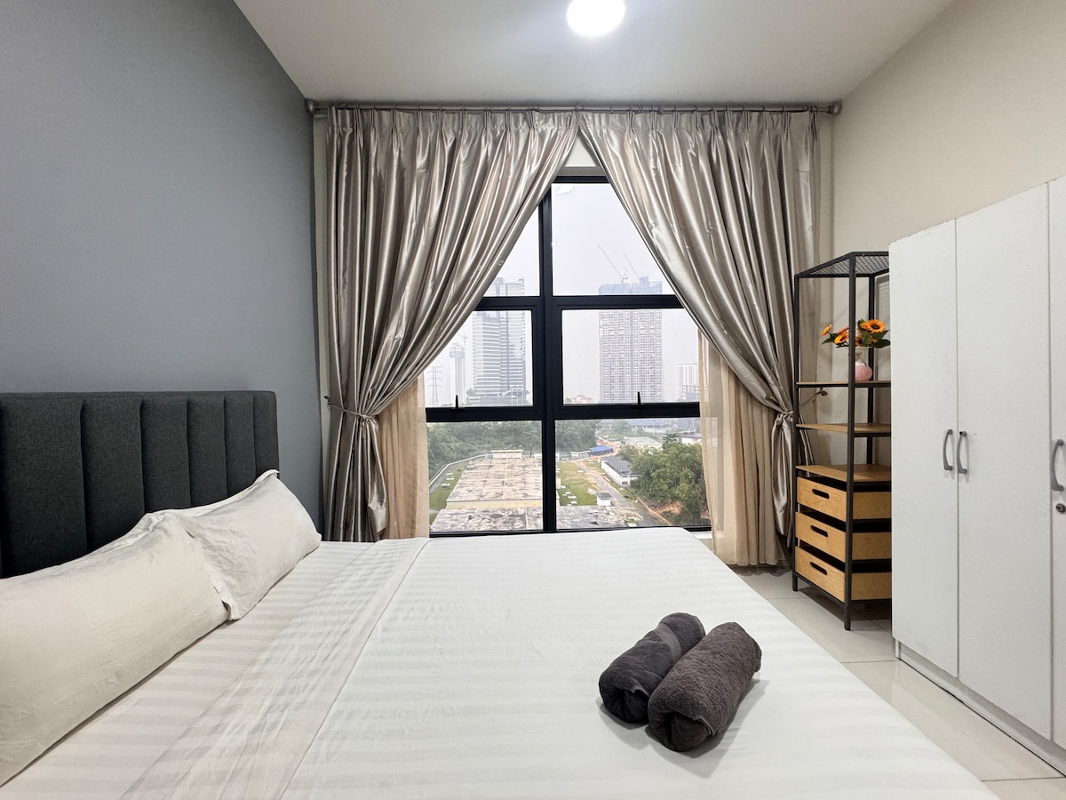 Сучасна та повністю обладнана квартира в кондомініумі на високому поверсі з вражаючим видом на центр міста Куала-Лумпур. Стратегічне розташування та з 'єднання в місті (приблизно протягом 15 хвилин до більшості популярних місць, вежі-близнюка/вежа Куала-Лумпур/Букіт Бінтанг/Середня долина). Сучасні зручності, такі як панорамний басейн, тренажерний зал та джакузі на 28-му поверсі з таким самим дивовижним видом на центр міста. Усе це з 3-х рівневою безпекою в приміщенні. Легкий доступ до шоссе(NSE/NPE/MEX) та багато Grab. За кілька хвилин пішки можна дістатися до 7-11 та закладів харчування.