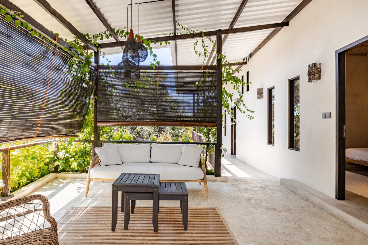 Відпочиньте на нашій сучасній, затишній віллі в Унгасані, Балі. Прокиньтеся серед зеленої трави та приголомшливих краєвидів на пишний луг та статую Гаруди Вішну Кенкана. Трохи в стороні від протоптаного шляху, але в межах досяжності (~30 хвилин до аеропорту/пляжів), запрошує вас по-справжньому жити, як місцеві жителі, стильно. Відпочиньте в приватному оазисі з 2 спальнями, окремими ванними кімнатами, робочими місцями та вітальнею/кухнею-студією. Це не типовий готель з повним спектром послуг, ЛИШЕ ДЛЯ МАНДРІВНИКІВ, ЯКІ ЛЮБЛЯТЬ ПРИРОДУ, шукають спокою, автентичності та омолодження.