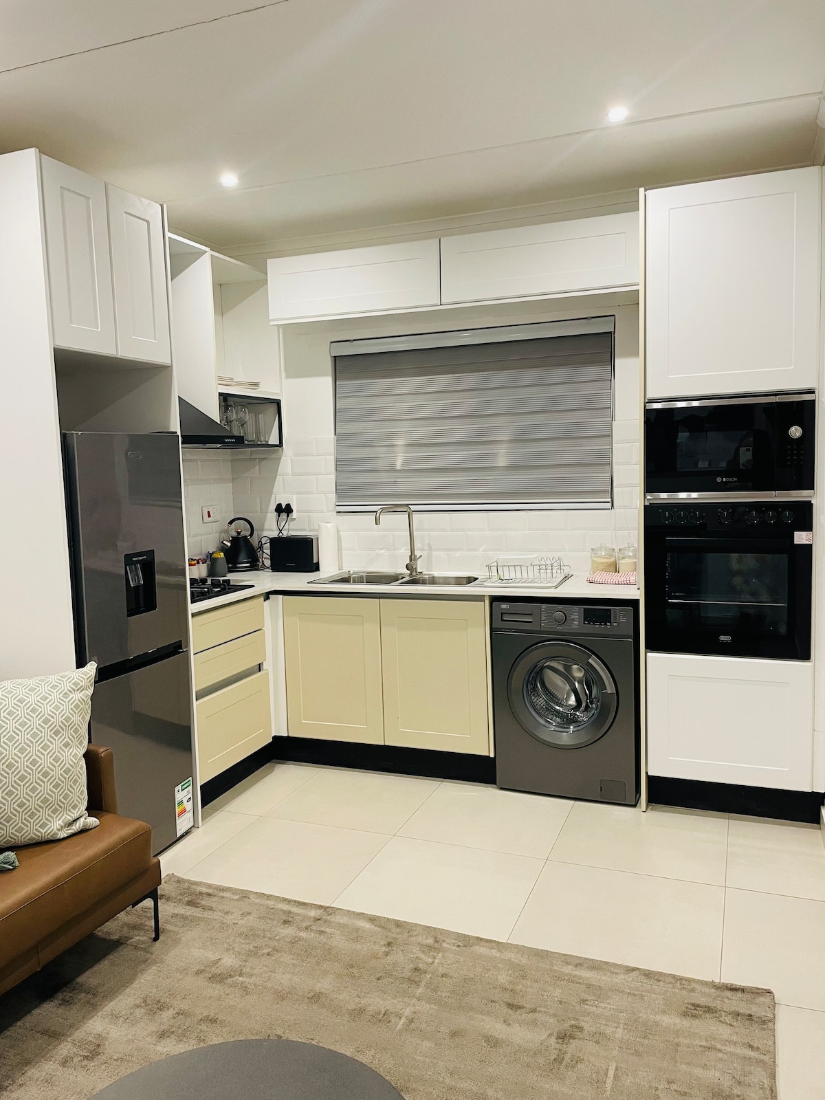 Ця унікальна оселя має власний стиль. Насолоджуйтеся перебуванням у цій компактній квартирі-студії, призначеній для сну, їжі та обіду. Міні-кухня повністю обладнана газовою варильною поверхнею, міні-холодильником та мікрохвильовою піччю. Є окрема ванна кімната з душем. Доступний телевізор із DSTV (кабельне телебачення), а також доступ до Wi-Fi. Для резервного електроенергії є сонячна система Квартира-студія прикріплена до головного будинку, з власним зовнішнім входом та парковкою на території.