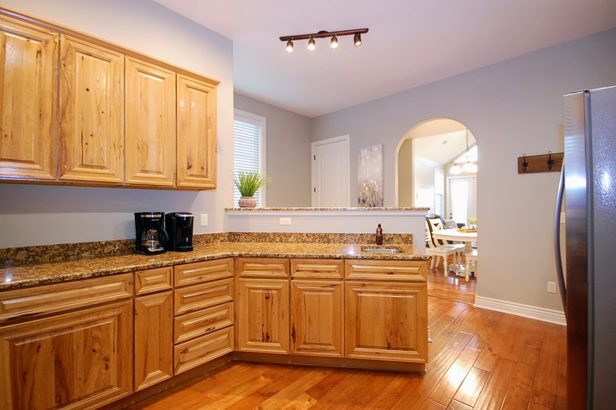 🛑 Tressa says: "Stop Looking and Book It!" Your 5-star Branson escape! NO stairs. 💛Brittany says: "This was the first time that we have stayed at an Air B&B and they made us feel right at home. We will be staying here again. 10,000,000,000/10" Amenities: • Coffee bar • Luxe king beds • 4 Smart Roku TVs • Fast WiFi • Arcade game Location Perfection! 🌿You get a spotless sanctuary with the perfect split: peace and quiet, yet only 12 minutes to Silver Dollar City and 8 minutes to the Strip.