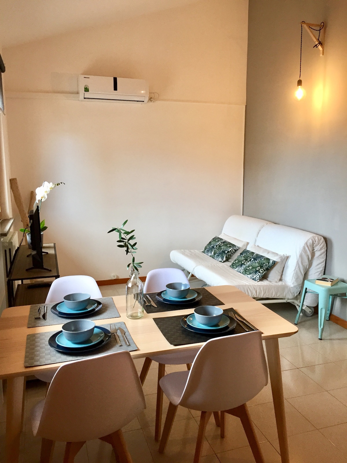 L'appartamento, situato al primo piano di un complesso di villette a schiera, è stato rinnovato nell'arredo (2019). Il materasso e i cuscini sono in memory foam. Nel living si trovano i due divani letto, smart tv, tavolo da pranzo. Il bilocale è provvisto di aria condizionata e riscaldamento. Nel bagno troviamo il box doccia e lavatrice. La cucina è attrezzata. L'alloggio ha il posto auto e Wi-Fi gratuito. In Estate il soggiorno minimo è di una settimana con arrivo e partenza di sabato.