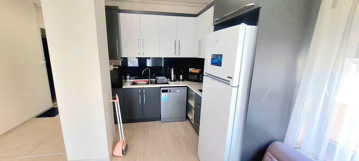 Ця квартира підходить для 4 осіб. Він складається з 2 спальні, 1 вітальні з кухнею, 1 ванної кімнати та 1 балкону. У кожному приміщенні є кондиціонер та опалення. У квартирі є пральна машина, посудомийна машина, електрична піч, холодильник, фен, газова плита. Для сну є 1 двоспальне ліжко, 1 односпальне ліжко та диван. Квартира повністю мебльована та сучасно обладнана.