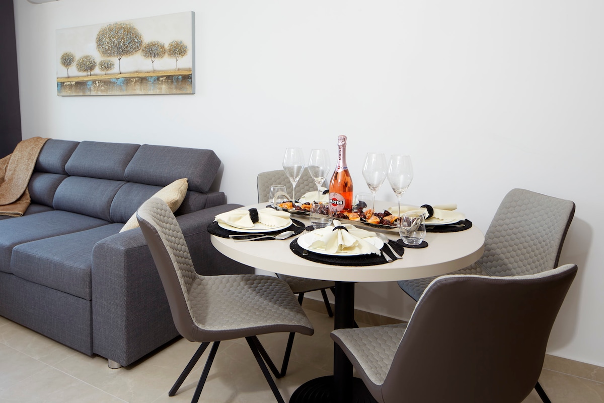 У цьому стильному помешканні ви чудово проведете час усією сім’єю. Якщо вам потрібен відпочинок для вас і вашої родини в Бургасі, то це ваше місце. Ви можете поєднати подорож на природі зі спа-процедурами та відпочинком в «Aqua Calide» або «Terma Numer». Ви можете відпочити в цілющій мінеральній воді в цьому районі та насолодитися домашнім комфортом і зручністю. У будинку є 2 спальні, простора вітальня з диваном-ліжком та окрема кухня. Підходить для 7 дорослих або 6 дорослих + 2 дітей.