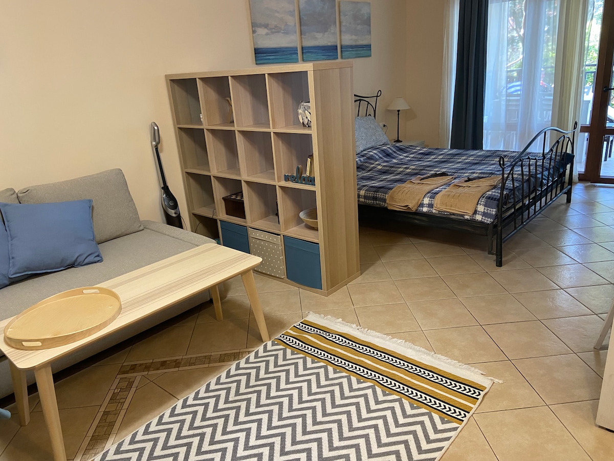 Класна і яскрава квартира в туристичному центрі Бяла. Студія з усіма зручностями на 1 поверсі, басейн, 400 м до піщаного пляжу, парковка, супермаркети, атракціони, численні ресторани навколо. Чудове місце для сімейного відпочинку з дітьми!