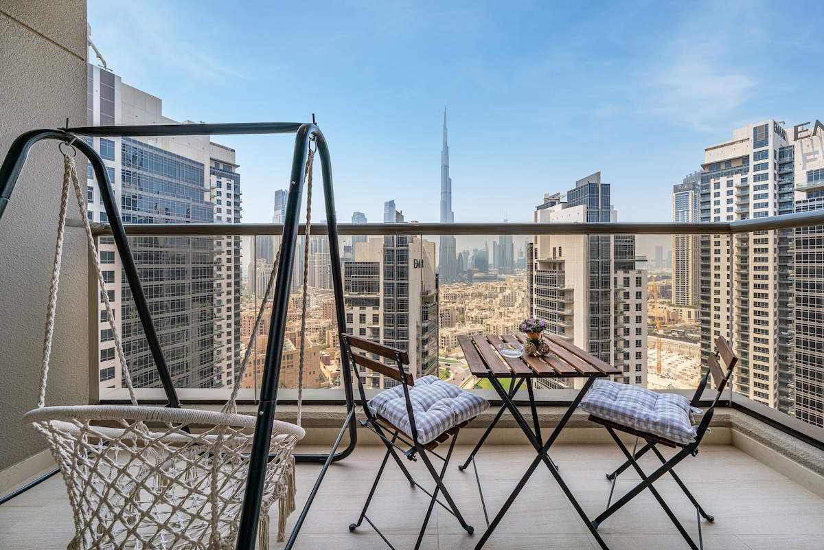 Розкішна студія в центрі міста | Балкон з видом на Бурдж-Халіфу