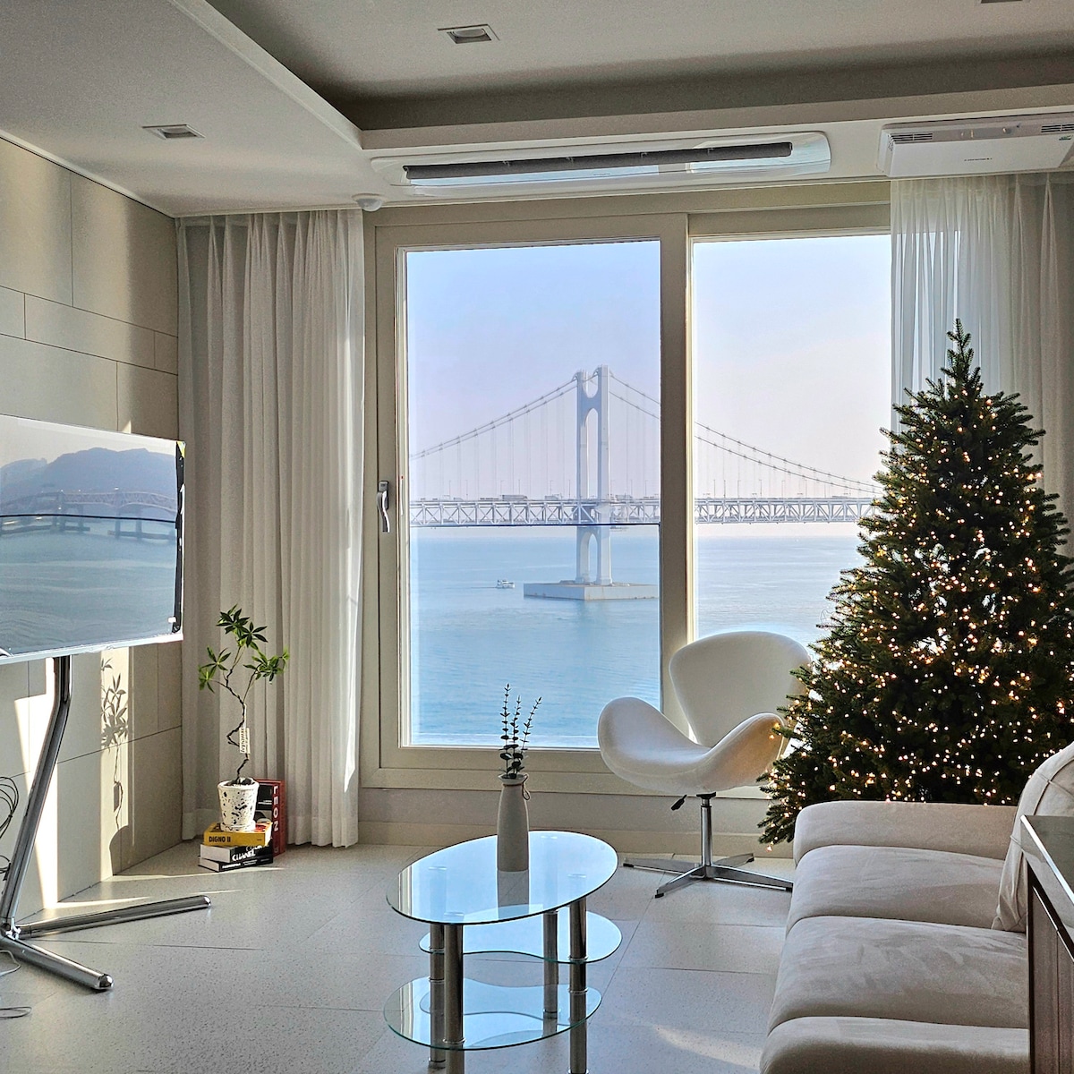 Діамантовий міст, ласкаво відомий як міст Кванган, розташований найближче до Пусана з видом на міст Кванган. Це стильне нове помешкання, з якого відкривається найкращий вид на Пусан з острова Хеунде Донгбек і Йонгхо-дон. Він знаходиться в хвилині ходьби від пляжу Квангаллі та Книги рекордів Гіннеса з найбільшим центром сашімі, парком на набережній, Starbucks та багатьма іншими цікавими місцями. Я подумала про місце, де можна відразу відпочити від усього цього. Унікальність і надмірність простору може дати задоволення та чутливість моменту, але він не залишиться надовго. Ми хотіли створити гармонійний простір із комфортом, який ви відчуваєте під час свого перебування, тонкою та тривалою чутливістю та прекрасним краєвидом, який не гармонійний. Під час запланованої подорожі ви зануритеся в чудове море та простір Сінабро Квангаллі.