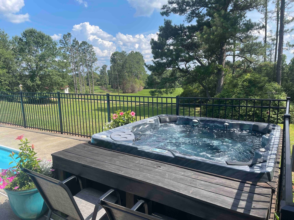 Discover tranquility at our charming farmhouse retreat on the Northshore, just 10 minutes from vibrant downtown Covington, LA. Privately set on 8 lush acres with a full-time caretaker, enjoy rustic elegance, relaxing by the pool, fishing in the stocked pond, and leisurely strolls through the walking trails around the property. Explore nearby Covington's boutiques, cozy coffee shops like Coffee Rani, and fine dining at Del Porto. Escape to peaceful bliss.