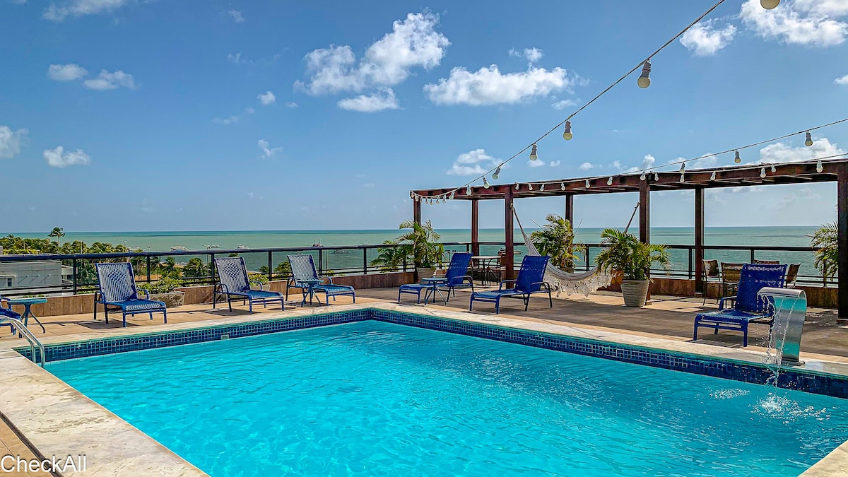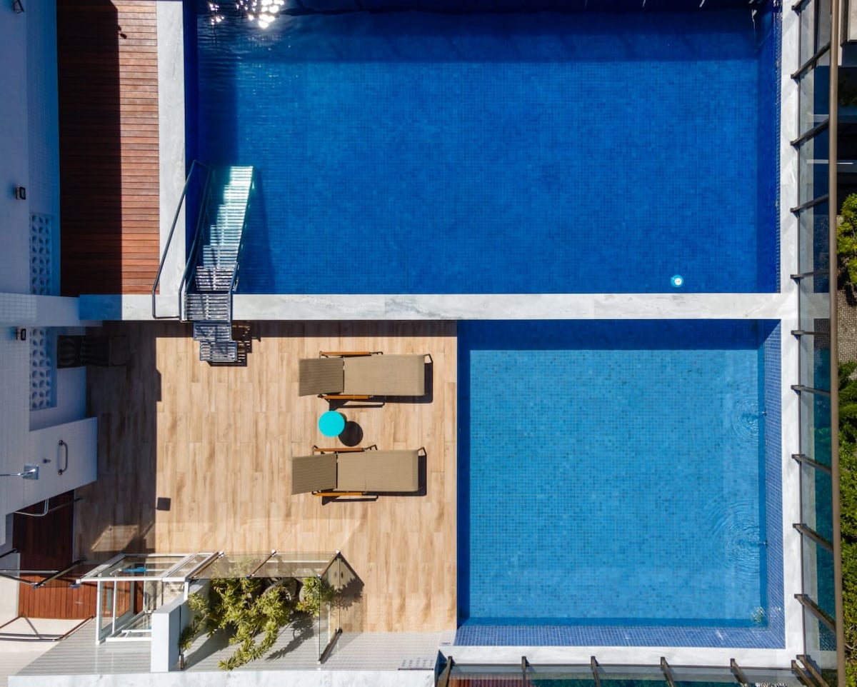 Ви зупинитеся в найкращій квартирі Жуана Пессоа з панорамним басейном та видом на океан на даху, кінозалом, дитячою зоною, ігровою кімнатою та офісним приміщенням. У квартирі є вся інфраструктура для вашого перебування: індукційна плита, мікрохвильова піч, кавоварка Nespresso, міні-бар, весь кухонний посуд, шафи, зручне ліжко, SmartTv та Wi-Fi. Усе це знаходиться лише в кварталі від знаменитого пляжу Тамбау.