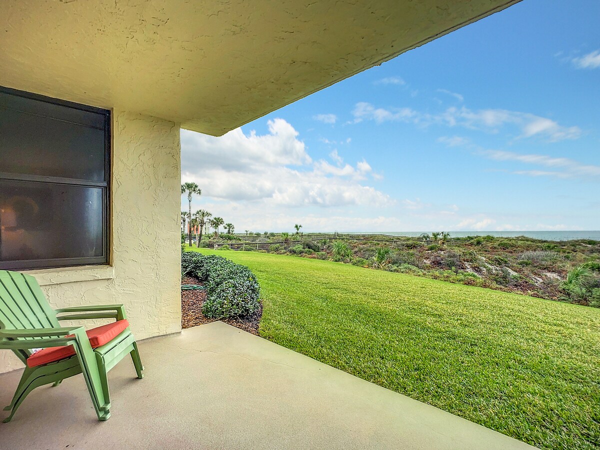 BEAUTIFUL OCEAN VIEW 2 BEDROOM CONDO JUST STEPS TO THE BEACH. COME AND STAY IN THIS RECENTLY REMODELED CONDO WITH PRIVATE TROPICAL COURTYARD, AND 2 OCEAN VIEW COURTYARDS OFF THE MASTER BEDROOM AND LIVING ROOM. WITH SO MUCH TO DO IN ST. AUGUSTINE, YOU CAN CHOOSE AN ADVENTUROUS, HISTORICAL, OR RELAXING VACATION TO MAKE YOUR BEST MEMORIES. THERE IS PLENTY OF SPACE IN THIS LARGE 1300 SQFT CONDO. THE BEACH IS VERY LARGE WITH LOTS OF PLAY SPACE AND CAN EVEN FEEL LIKE A PRIVATE BEACH.
