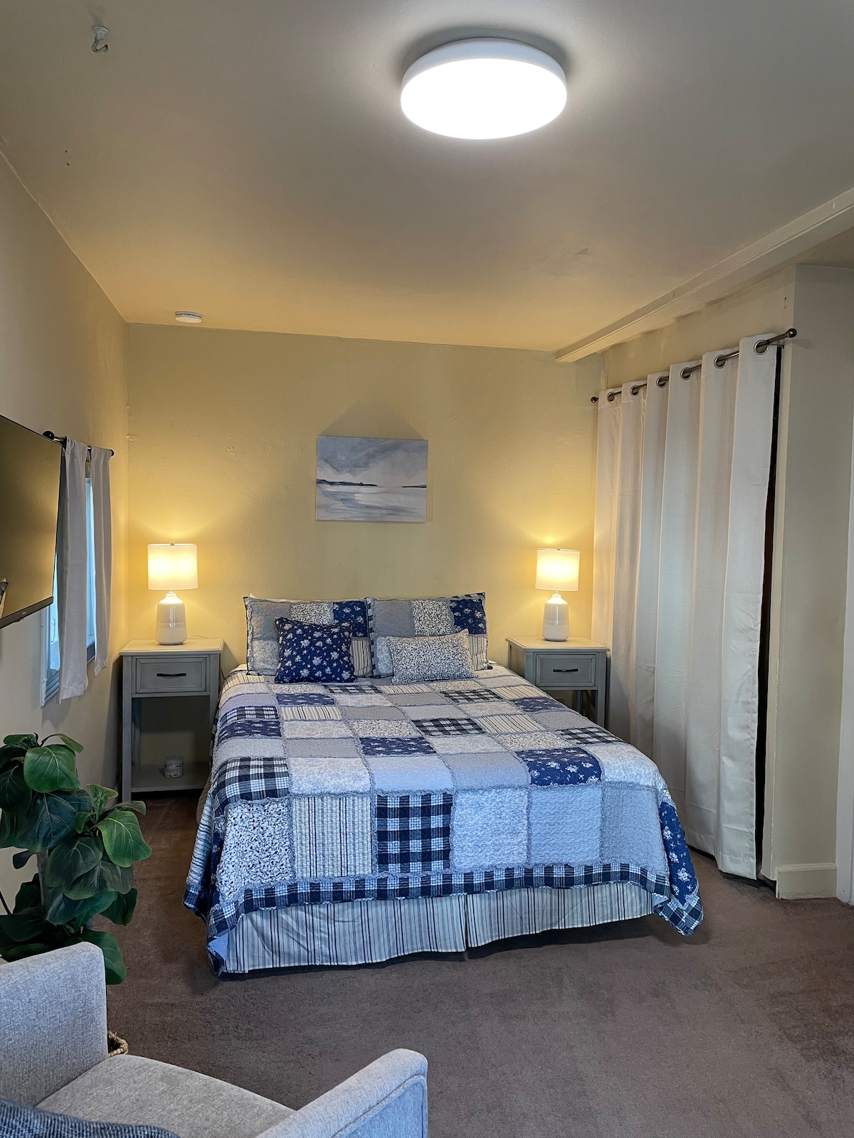 This private courtyard guesthouse is a quiet, newly renovated ADU on our family’s property with a private entrance and free driveway parking. Designed for travelers, business stays, and couples, the space features high ceilings, a spa-like oversized shower, and a kitchenette for light cooking. Best suited for peaceful, respectful stays.