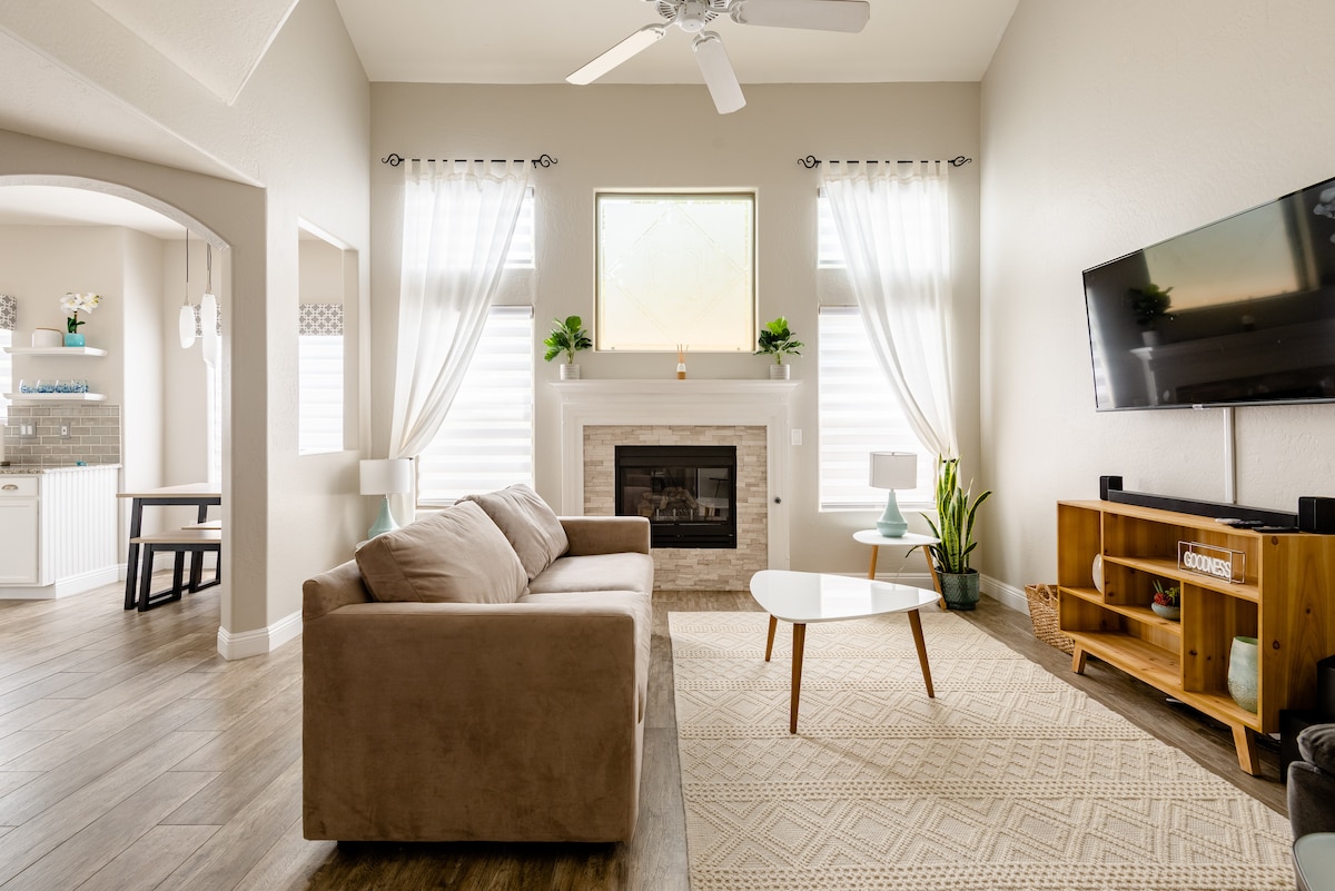 Ласкаво просимо до Scottsdale Great Escape, вашого просторого та освітленого сонця. Відкрита планування пропонує велику кількість природного освітлення, створюючи теплу та привабливу атмосферу. Незалежно від того, чи ви тут, щоб працювати або розслабитися, ми надаємо вам високошвидкісний Wi-Fi у спеціальному робочому місці, повністю обладнану кухню, чудове патіо на задньому дворі з грилем на відкритому повітрі та затишним диваном, де ви можете розслабитися та насолодитися улюбленими телевізійними шоу. Для додаткової зручності є прикріплений гараж.