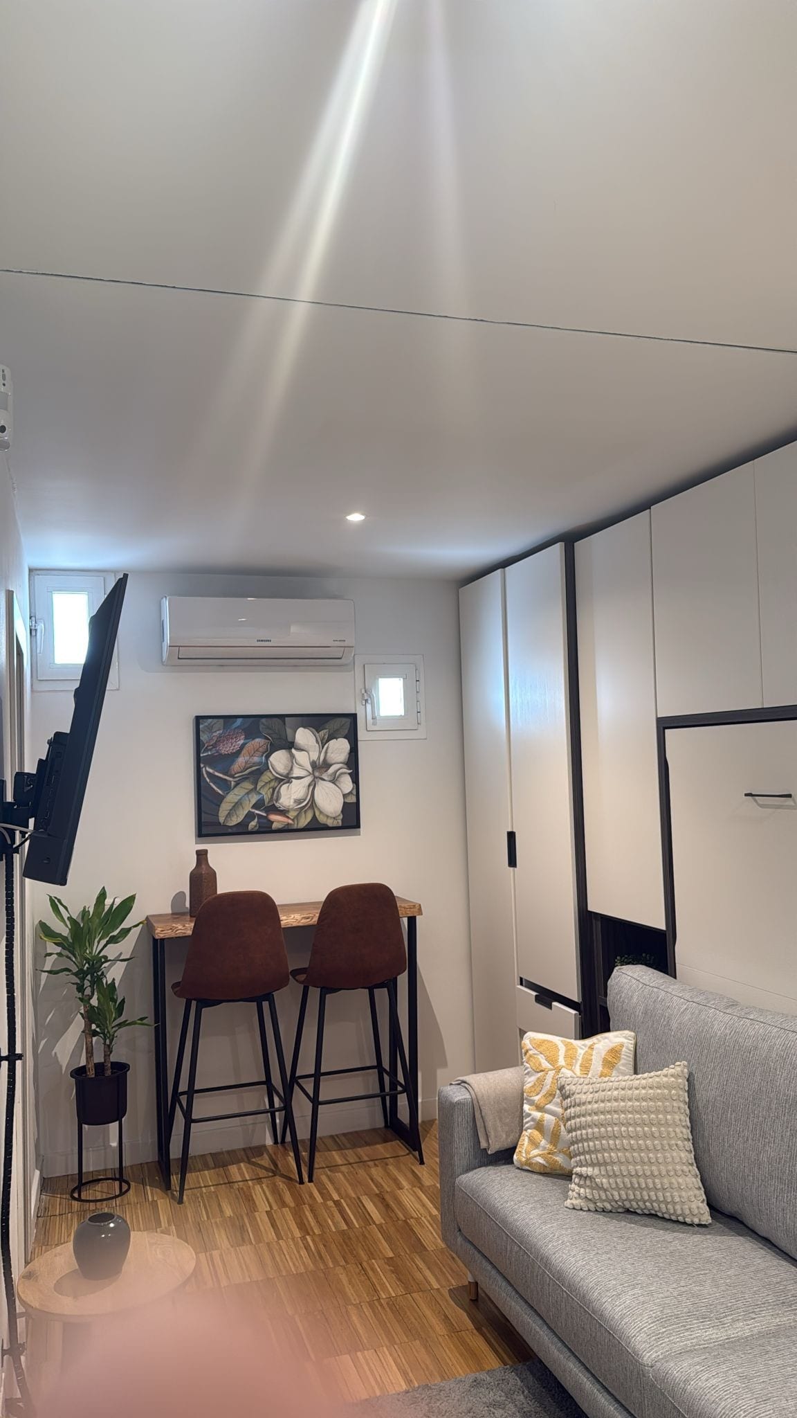 Невелика, тиха і затишна студія. Незалежно від основної квартири. Розташовано під входом. Низькі двері з двома маленькими вікнами відкриваються на дверний отвір. Не отримує природного освітлення. Це не оренда для туристів. Помешкання тимчасово орендується для роботи, навчання або відпочинку. Зручно розташоване в районі з хорошим сполученням, недалеко від супермаркетів, ресторанів та магазинів. Поруч розташовані музеї, парк Ретиро, станція Аточа та автобус 203 Airport Express.