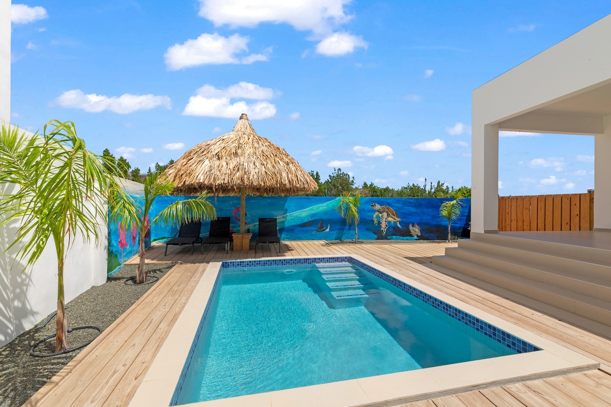 In the new Elisabeth Resort, located near Mambo Beach, lies this new and very cozy villa, Villa Sunbeam, and it truly is a little sunbeam! The villa has plenty of space for your rental car, and as soon as you arrive, you'll notice that a lot of attention has been paid to the villa's decor. Everything is designed to reflect the Caribbean atmosphere of Curacao. The beaches of Mambo and Cabana Beach are just a short walk from the villa. In short: a perfect spot for a wonderful tropical vacation.
