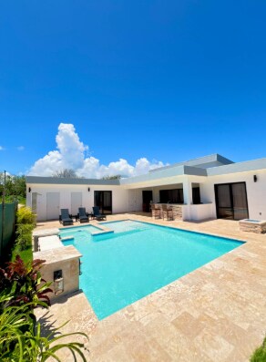 Відкрийте для себе сучасну та розкішну віллу у віллах Agua Dulce, Сосуа, в оточенні природної краси. З другого поверху відкривається вид на океан, 3 спальні з великим двоспальним ліжком і окремими ванними кімнатами, повний кондиціонер, велике патіо, сад, басейн із джакузі та парковка на 5 автомобілів. Спільнота пропонує баскетбольний майданчик, тенісний корт і спокійне озеро, яке ідеально підходить для відпочинку та спілкування з природою.