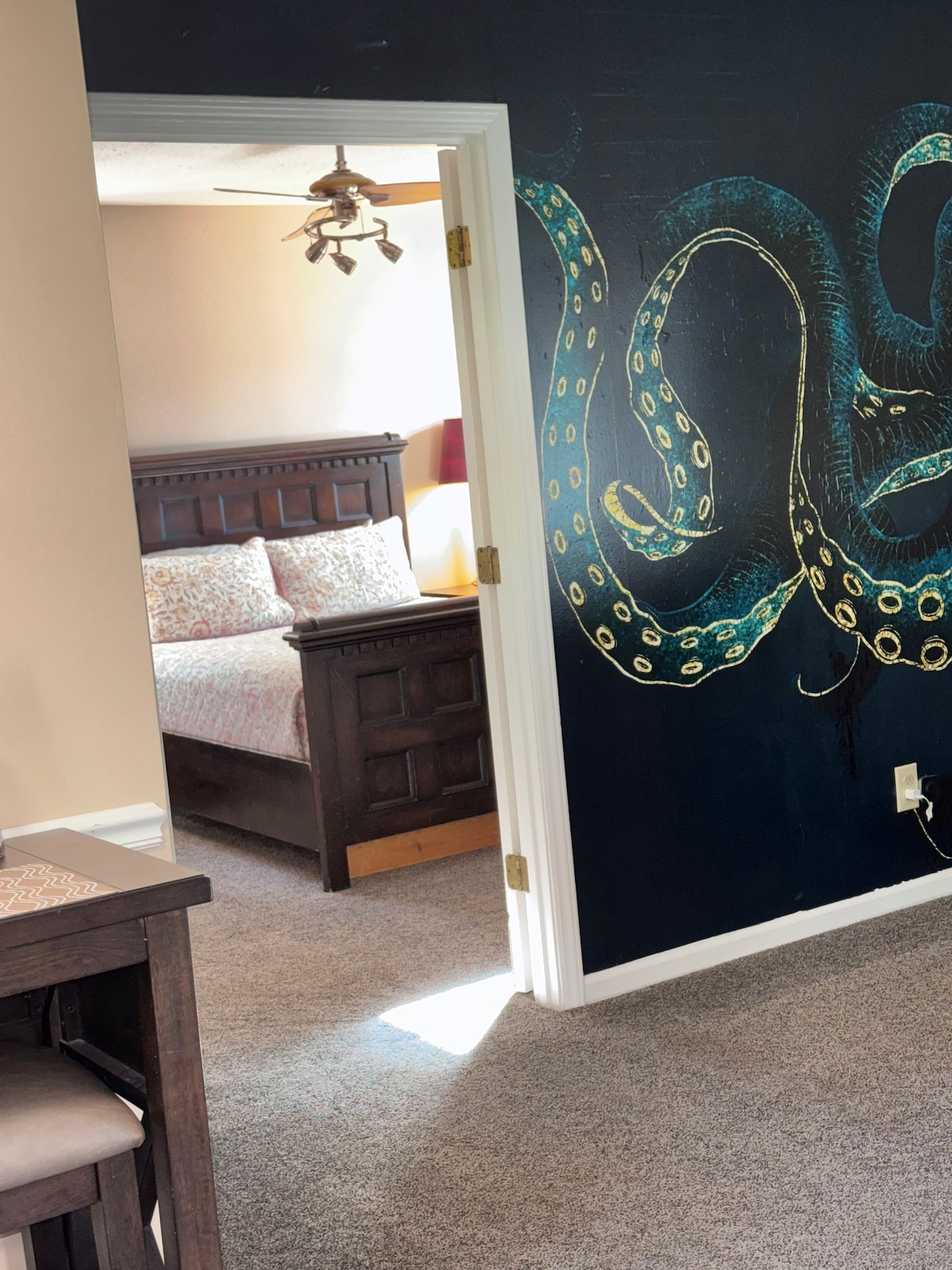 Відвідайте власний прихисток, схожий на зруб, у нашому підвалі! Ми створили помешкання, яке схоже на затишний зруб ( окремий вхід ) з дерев 'яними акцентами та теплою привабливою атмосферою. Одна простора спальня з телевізором та повністю обладнана кухня, зручно розташована в 2 хвилинах від ШОСЕ 49. Всього в 15 хвилинах від центру Конкорда, в 20 хвилинах від Гаррісберга 17 хвилин від Саранчі та 30 хвилин від району Університетського міста.