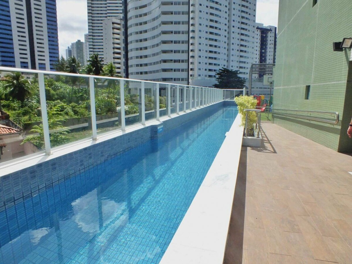 Нова та затишна квартира на найкращому пляжі Жуан-Песоа, повністю обладнана для відпочинку та роботи. У цій квартирі є чудовий балкон, дві спальні, ванна кімната, кондиціонер в обох спальнях, USB-розетки, Smart TV з Netflix, прасувальна дошка та праска тощо. У будівлі пропонують чудовий сніданок для гостей і мешканців за справедливою ціною. Насолоджуйтеся всім цим комфортом і дозвіллям на березі моря Кабу-Бранку!